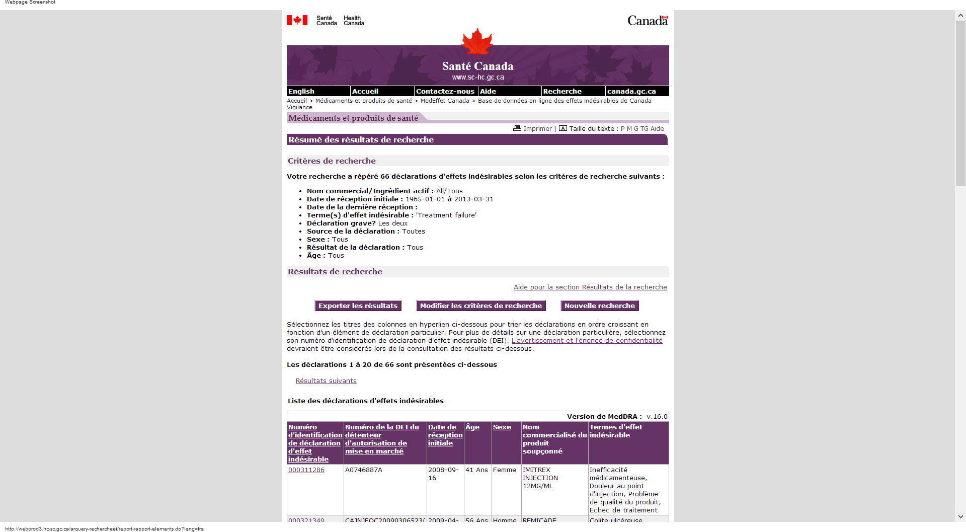 Les cas soumis à MedEffet sont tous lus, analysés et publiés dans la Base de données canadienne des effets indésirables. À ce jour, seulement 66 cas d’échec au traitement ont été rapportés à Santé-Canada! Pourtant, voici quelques exemples de cas à déclarer :